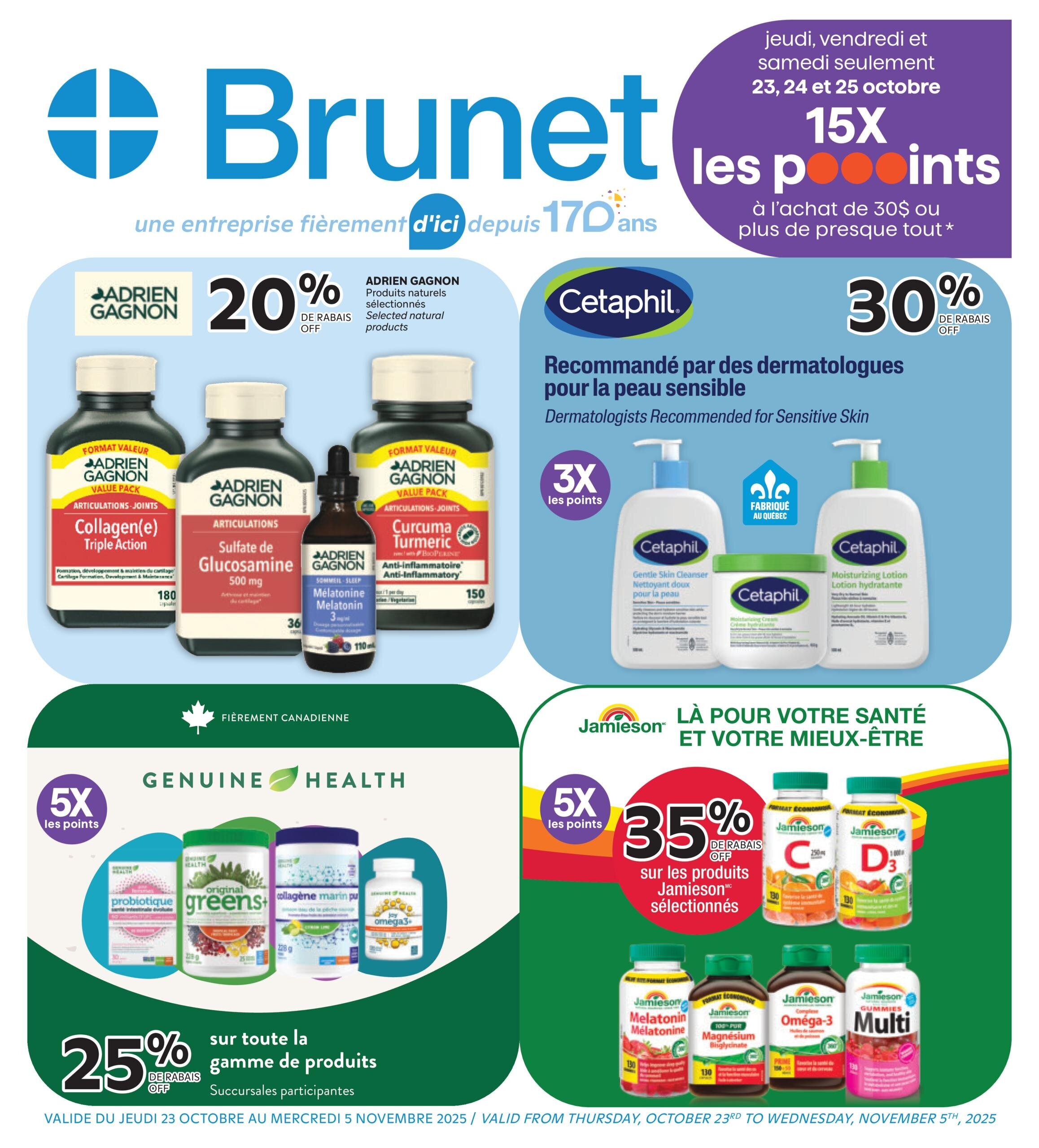 Parcourez et consultez la Circulaire Brunet Du 23 octobre au 5 novembre 2025 de Brunet pour voir ce qui est spécial dans cette semaine afin de ne jamais manquer une occasion d'obtenir les meilleurs prix. Recherchez des offres et décidez où vous allez acheter avec nos circulaires. Si vous appréciez les bonnes affaires et que vous voulez en tirer le meilleur parti, visitez notre page Circulaire Brunet Du 23 octobre au 5 novembre 2025 de Brunet.