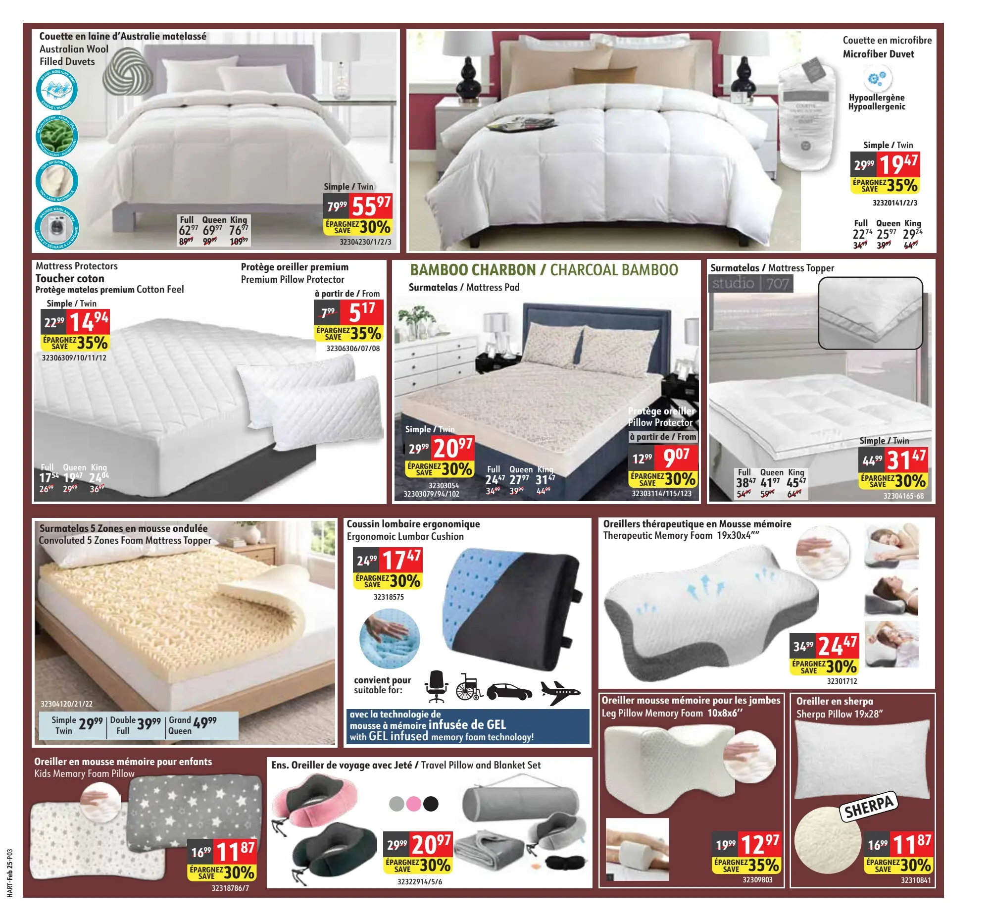 - Ens. de draps imprimé ou unis (Flanelle Flannel) – 24,00$ (Économie 46%)