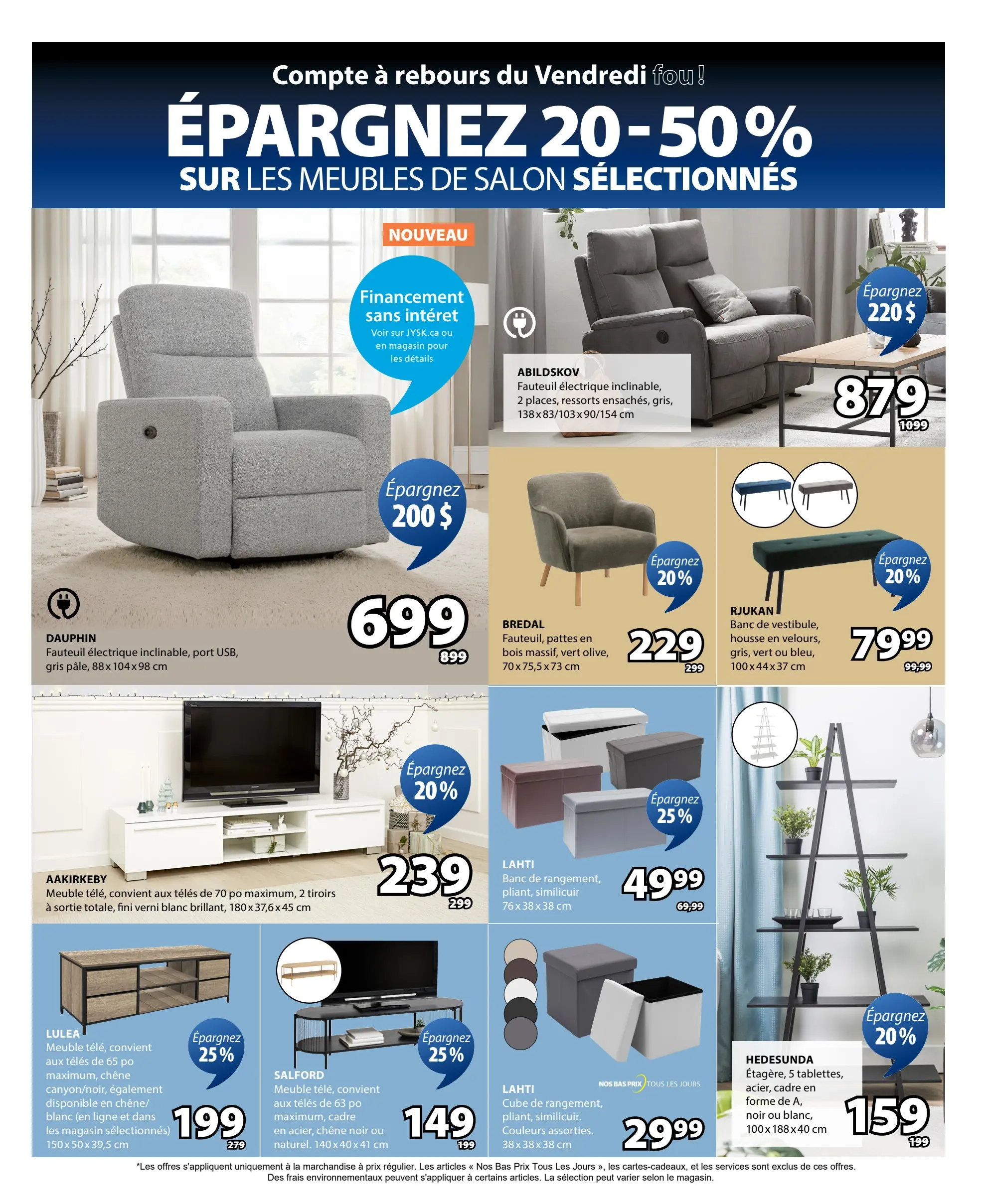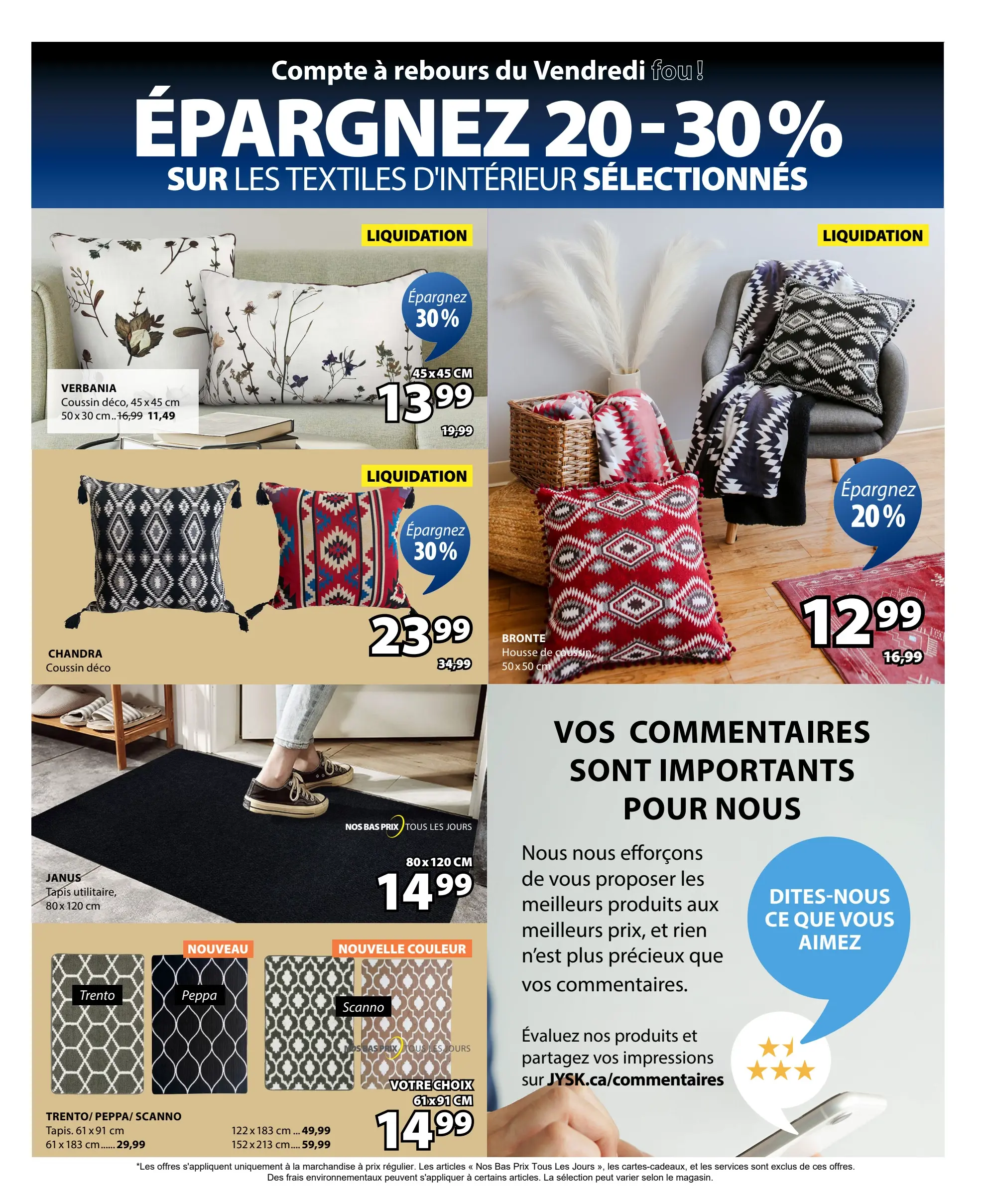 Parcourez et consultez la Circulaire Jysk Du 6 au 19 novembre 2025 de Jysk pour voir ce qui est spécial dans cette semaine afin de ne jamais manquer une occasion d'obtenir les meilleurs prix. Recherchez des offres et décidez où vous allez acheter avec nos circulaires. Si vous appréciez les bonnes affaires et que vous voulez en tirer le meilleur parti, visitez notre page Circulaire Jysk Du 6 au 19 novembre 2025 de Jysk.