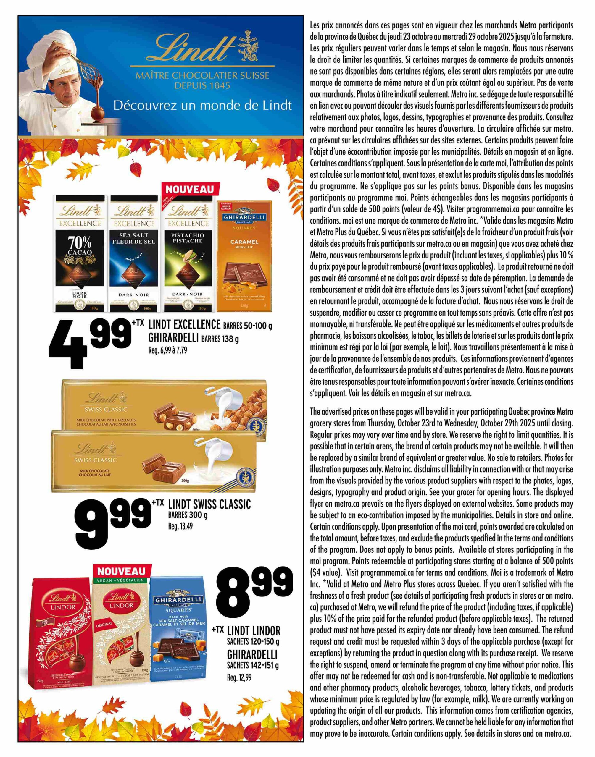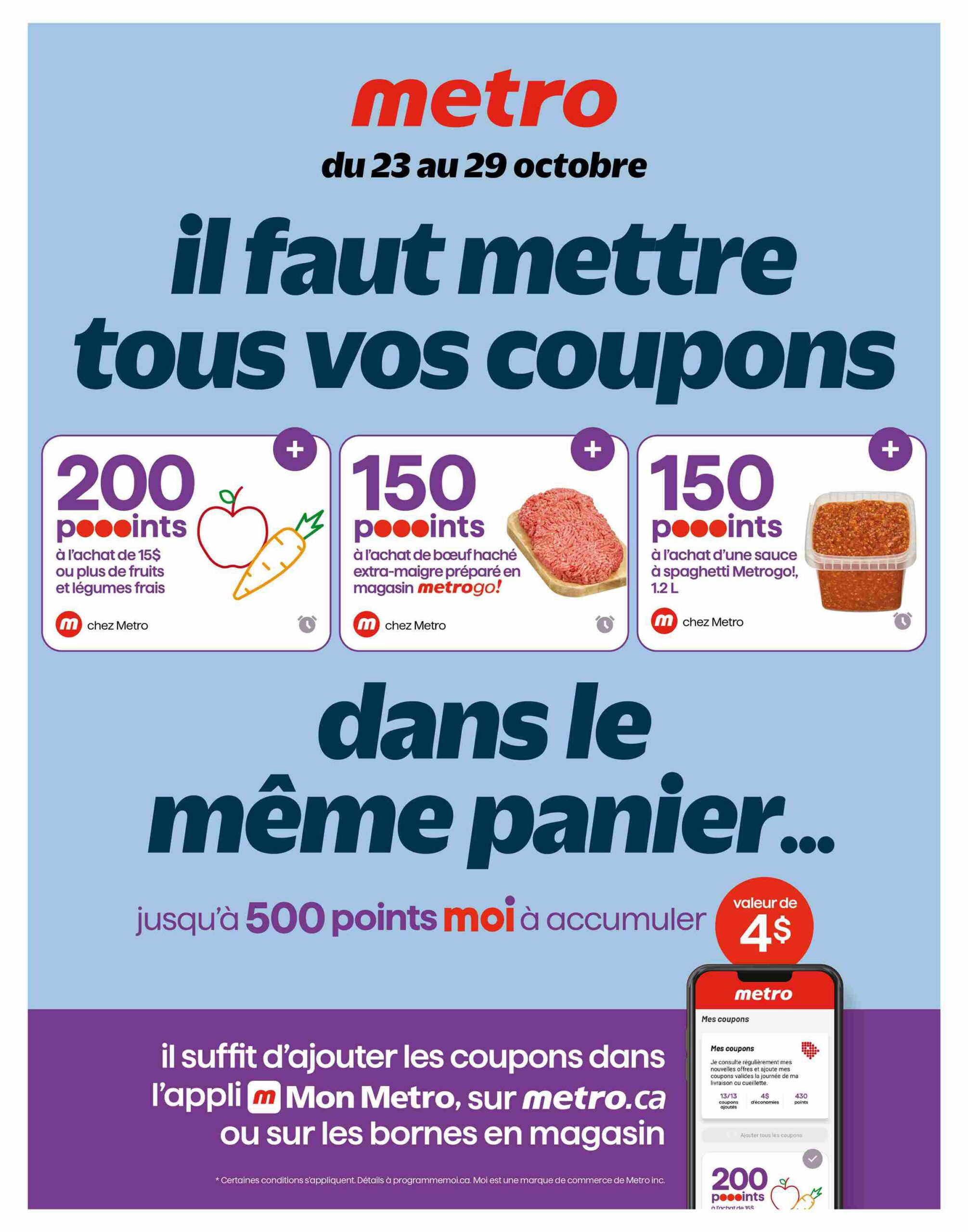 Parcourez et consultez la Circulaire Metro Du 23 au 29 octobre 2025 de Metro pour voir ce qui est spécial dans cette semaine afin de ne jamais manquer une occasion d'obtenir les meilleurs prix. Recherchez des offres et décidez où vous allez acheter avec nos circulaires. Si vous appréciez les bonnes affaires et que vous voulez en tirer le meilleur parti, visitez notre page Circulaire Metro Du 23 au 29 octobre 2025 de Metro.