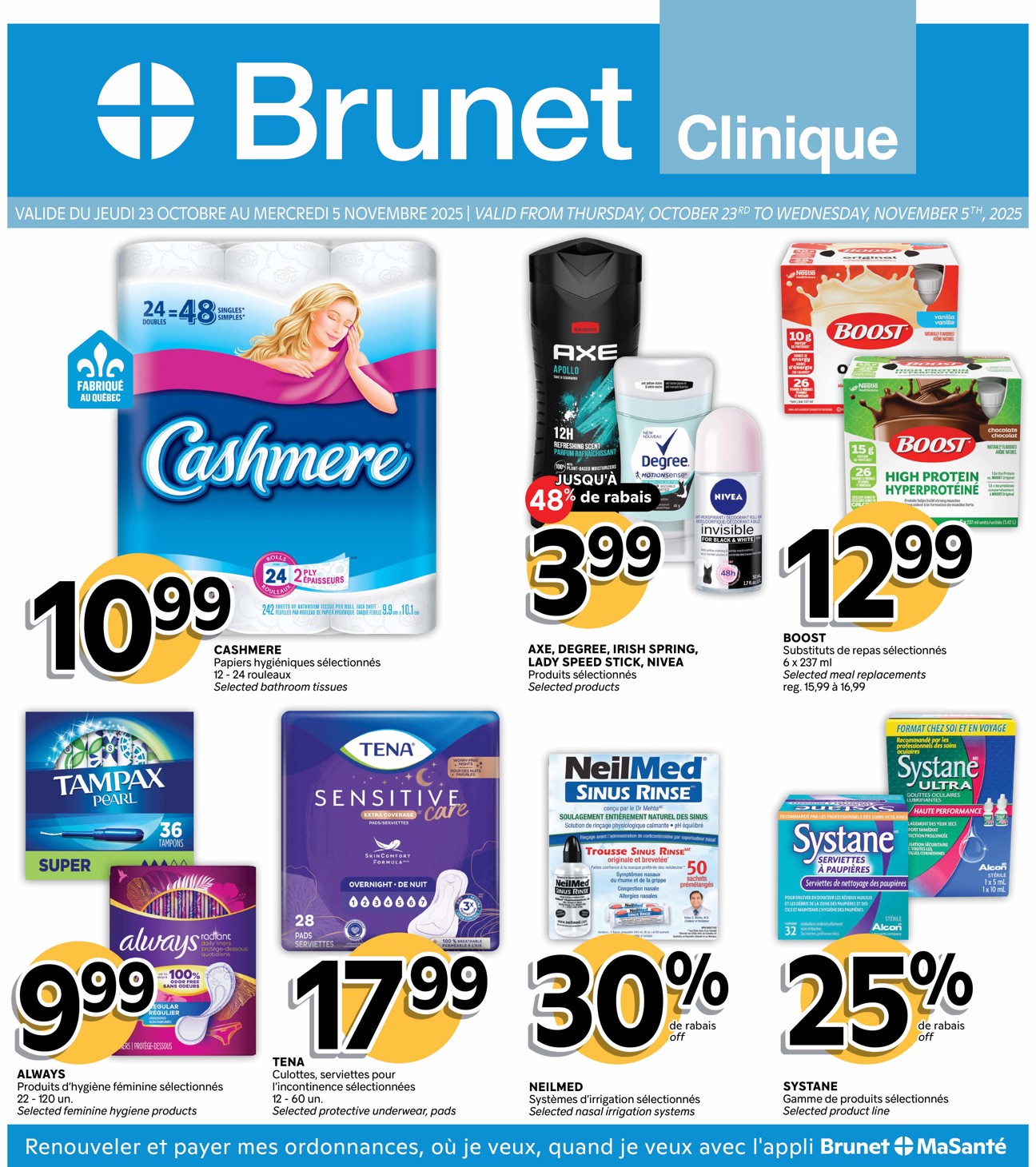 Parcourez et consultez la Circulaire Brunet – Clinique Du 23 octobre au 5 novembre 2025 de Brunet pour voir ce qui est spécial dans cette semaine afin de ne jamais manquer une occasion d'obtenir les meilleurs prix. Recherchez des offres et décidez où vous allez acheter avec nos circulaires. Si vous appréciez les bonnes affaires et que vous voulez en tirer le meilleur parti, visitez notre page Circulaire Brunet – Clinique Du 23 octobre au 5 novembre 2025 de Brunet.